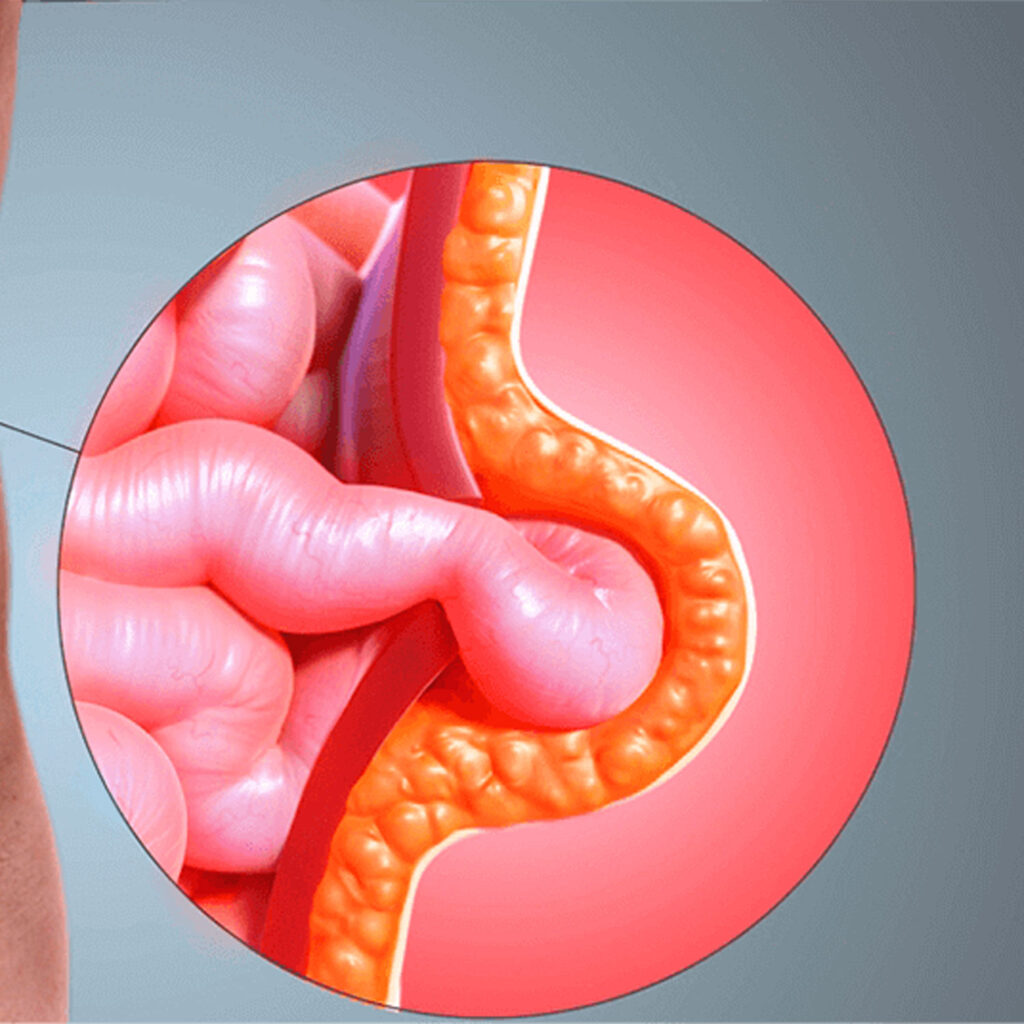 Es un «agujero» en la pared abdominal por rotura o separación de los músculos en una zona donde se ha eventracionrealizado una incisión quirúrgica. Por la hernia protuyen grasa intraabdominal, intestino y otras estructuras intraabdominales. Las hernias NO se curan por sí solas, necesitan de cirugía para ser reparadas. Los síntomas habituales son dolor, protuberancia o bulto en el abdomen, distensión abdominal, obstrucciones intestinales, y, en los casos más graves, necrosis intestinal